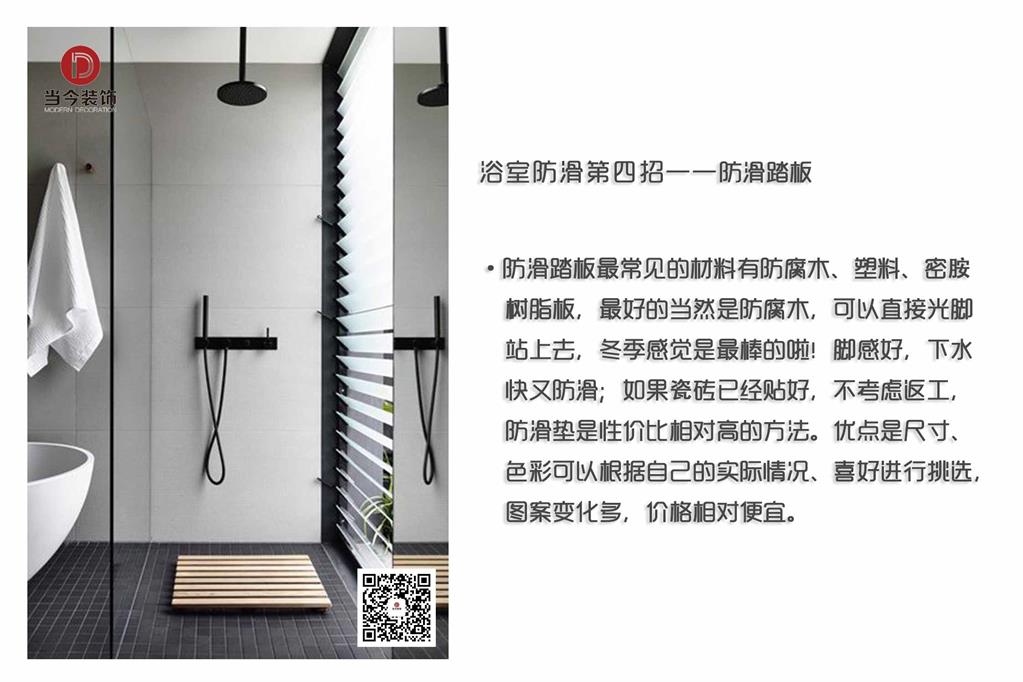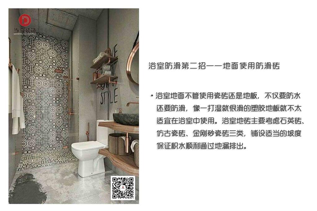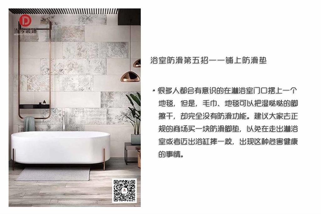 浴室防滑關(guān)系到人身安全問題,因此裝修的時候不可忽視這個問題。