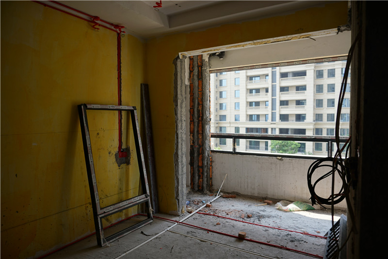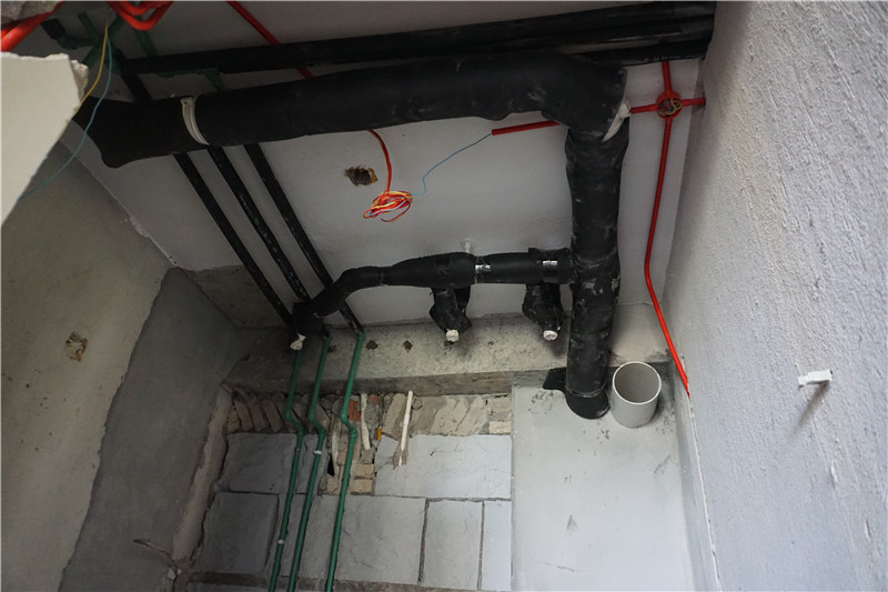 衛(wèi)生間墻體打薄,有待修補(bǔ),排水管加隔音棉處理,并將管蓋處進(jìn)行切割保留處理。